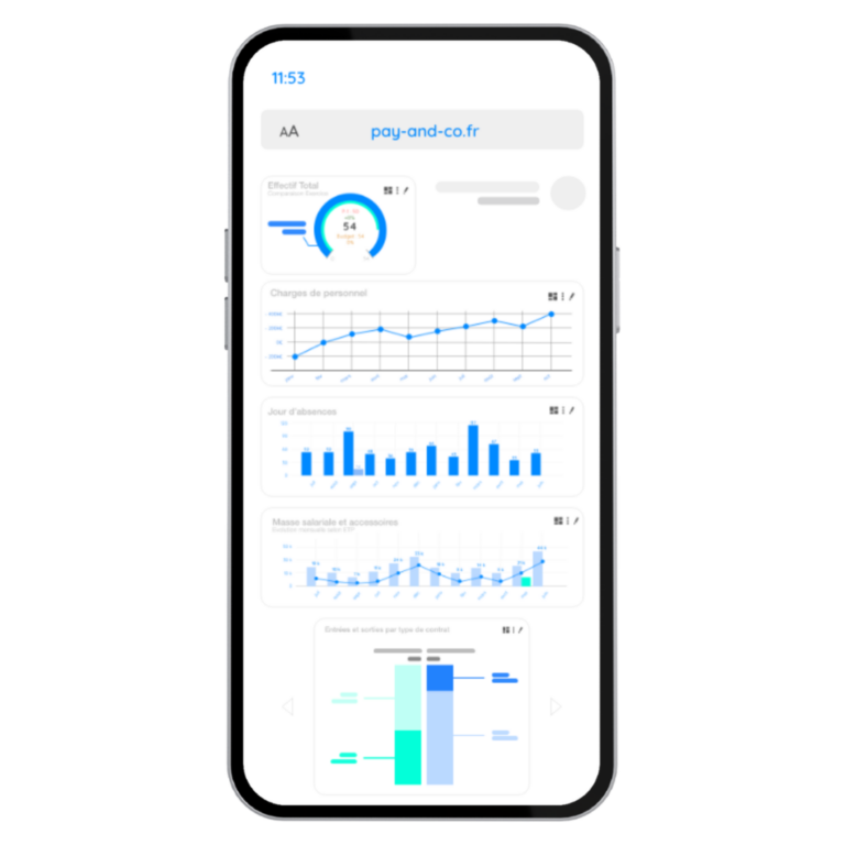 Un tableau de bord RH efficace est essentiel pour prendre des décisions éclairées. Il vous offre une vision claire et instantanée des principaux indicateurs de performance, vous permettant ainsi d’identifier rapidement les tendances et les anomalies. Avec PAY&Co, vous bénéficiez d’un tableau de bord intuitif et personnalisable, conçu pour répondre à vos attentes spécifiques.
